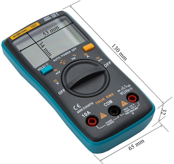 Мультиметр Richmeter RM101 с автоматическим выбором предела измерений. Данная модель мультиметра вполне подойдет как для любительских задач, так и для профессионального использования. Richmeter RM101 имеет стандартный набор функций: измерение напряжения (AC/DC), силы тока (AC/DC), сопротивления, емкости конденсаторов, частотомер, измеритель скважности импульсов, прозвонка и тестер диодов.